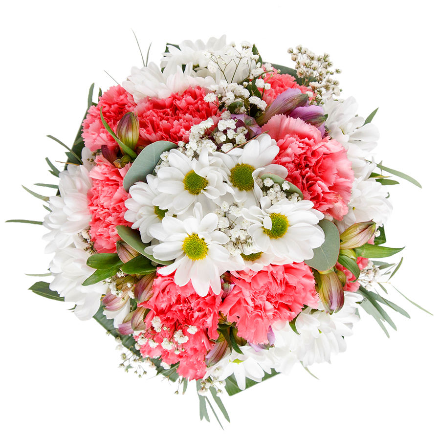 Enhance any moment with our stunning seasonal flower composition. This bouquet features a beautiful mix of white and pink blooms, meticulously arranged to create a unique and eye-catching display.